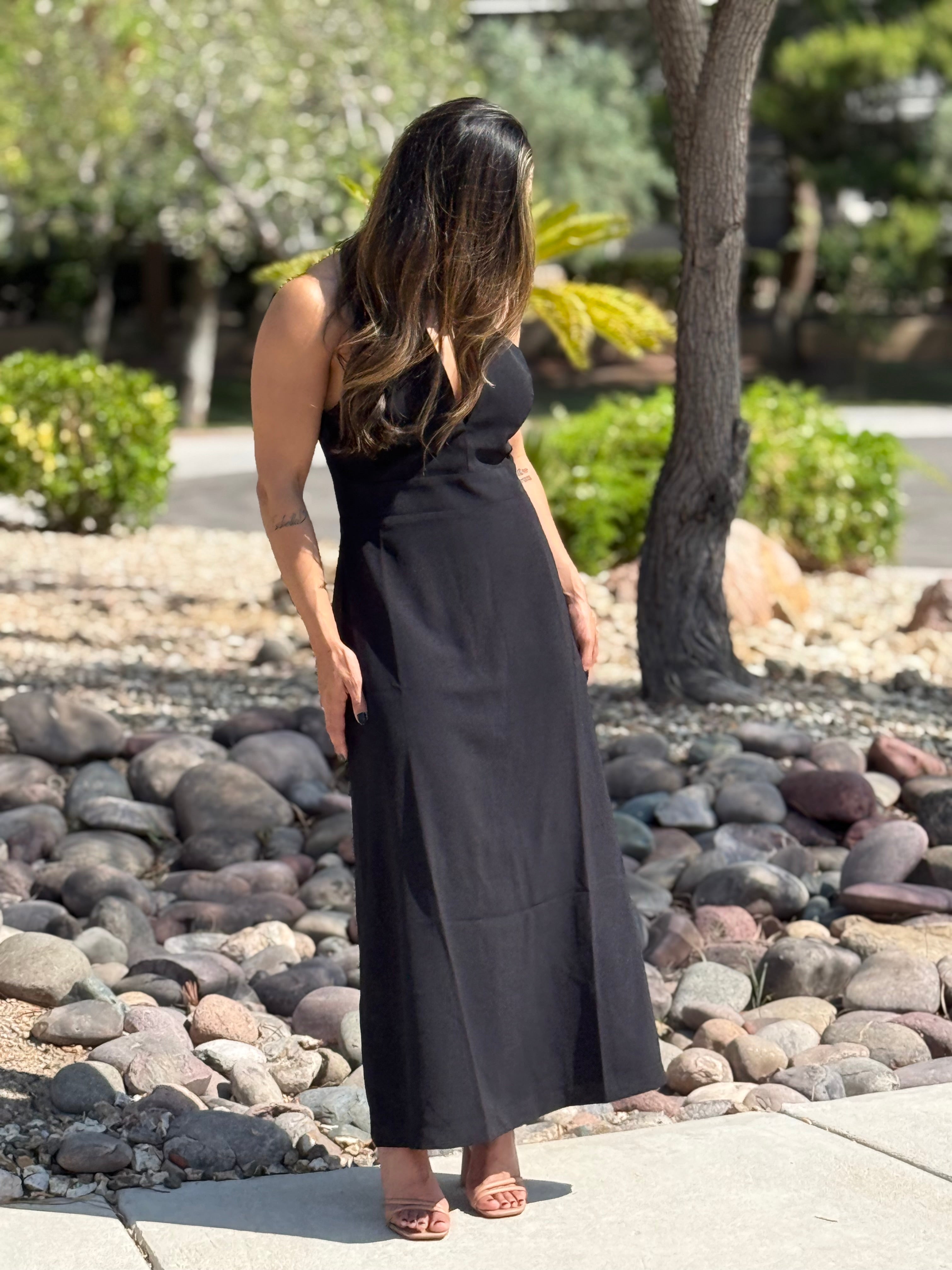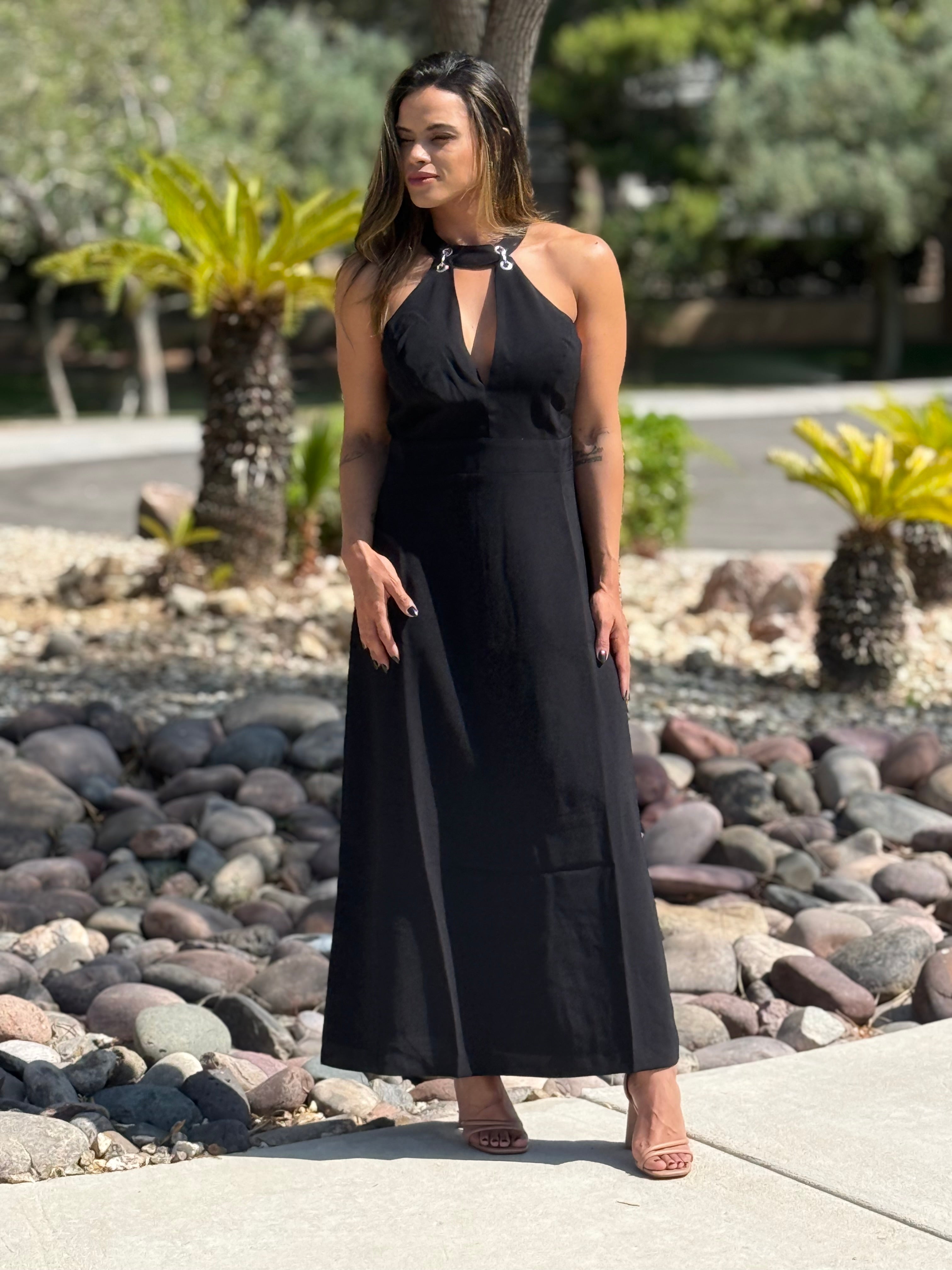 Description: Striking from every angle, this Maxi Viscose Dress features elegant eyelet detailing at the neckline and a bold open back for a balance of sophistication and allure. Crafted from fluid, lightweight viscose, it drapes beautifully over the body—perfect for sunset dinners, summer events, or chic getaways.