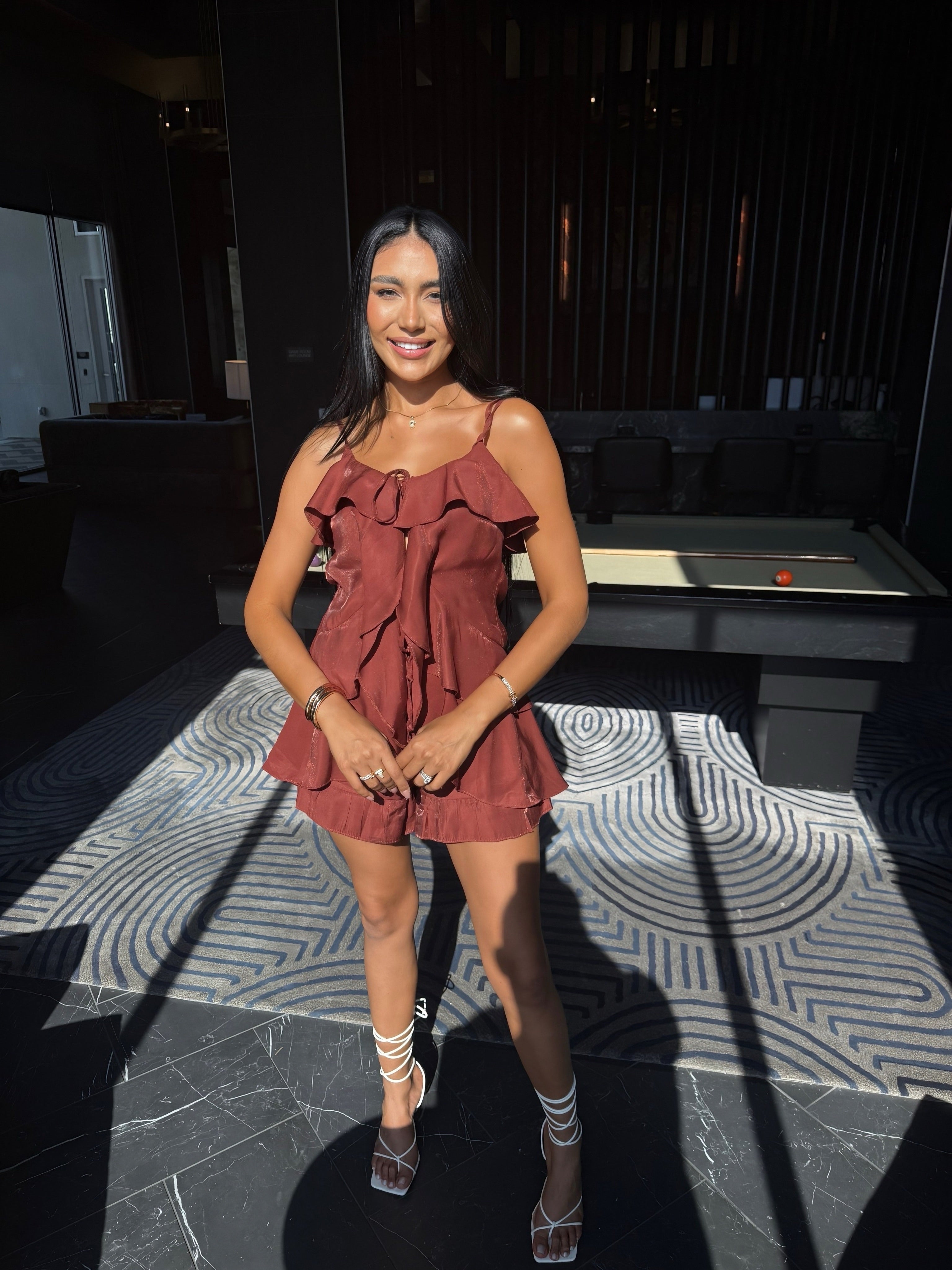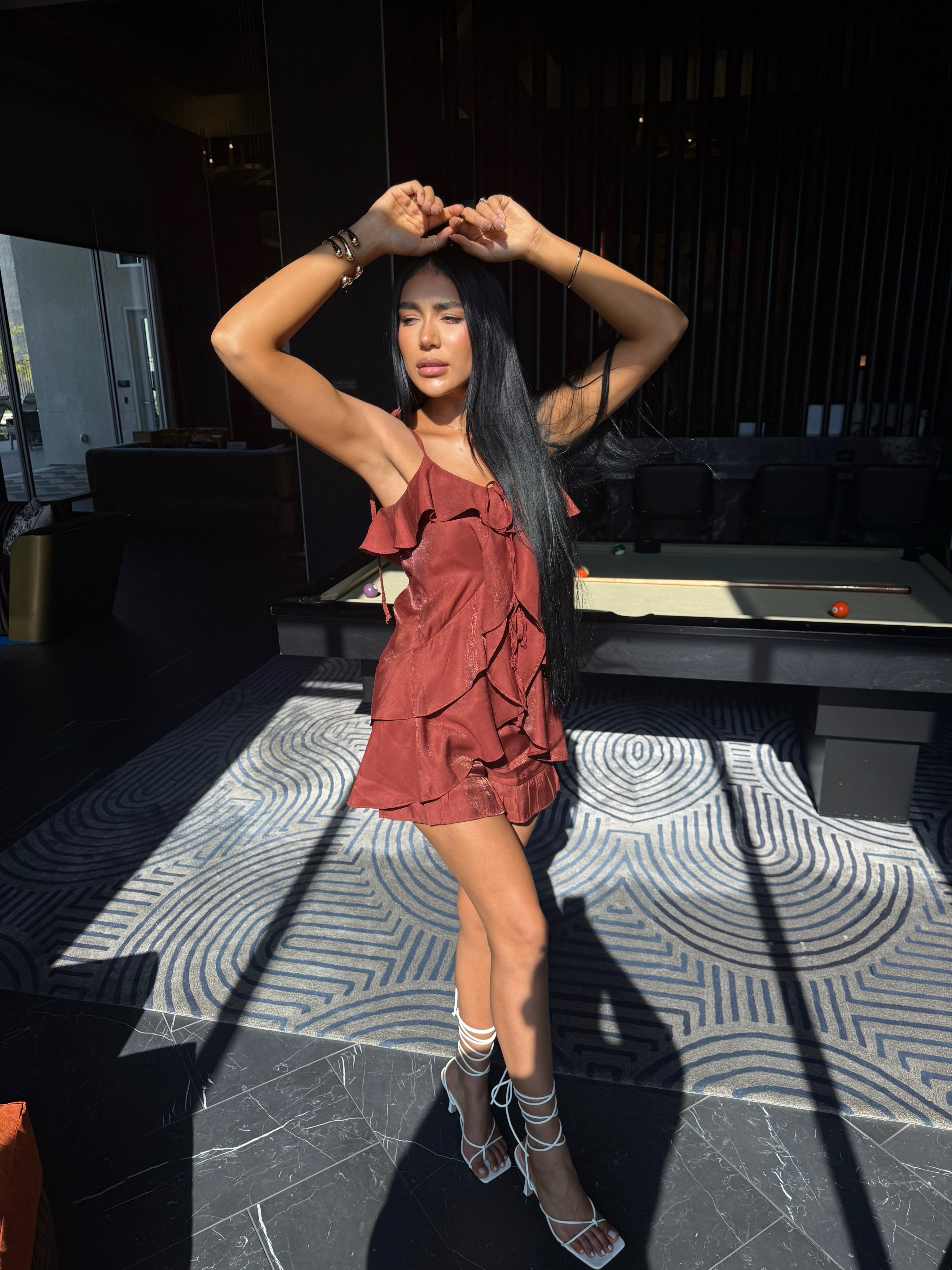 Light, breezy, and full of charm—this viscose set combines playful ease with effortless style. The blouse features delicate ruffle details that add movement and femininity, while the matching shorts offer a relaxed yet polished silhouette. Perfect for warm days, casual outings, or vacation looks that feel as good as they look.