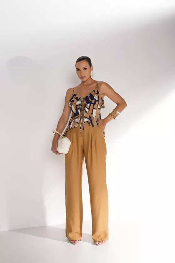 Lively and lightweight, the Stamped Viscose Tank Top with Front Tie is a perfect warm-weather staple. Crafted from airy viscose with a bold stamped print, it features a flattering neckline and a feminine front tie that adds movement and charm. A versatile piece that brings effortless flair to everyday looks.
