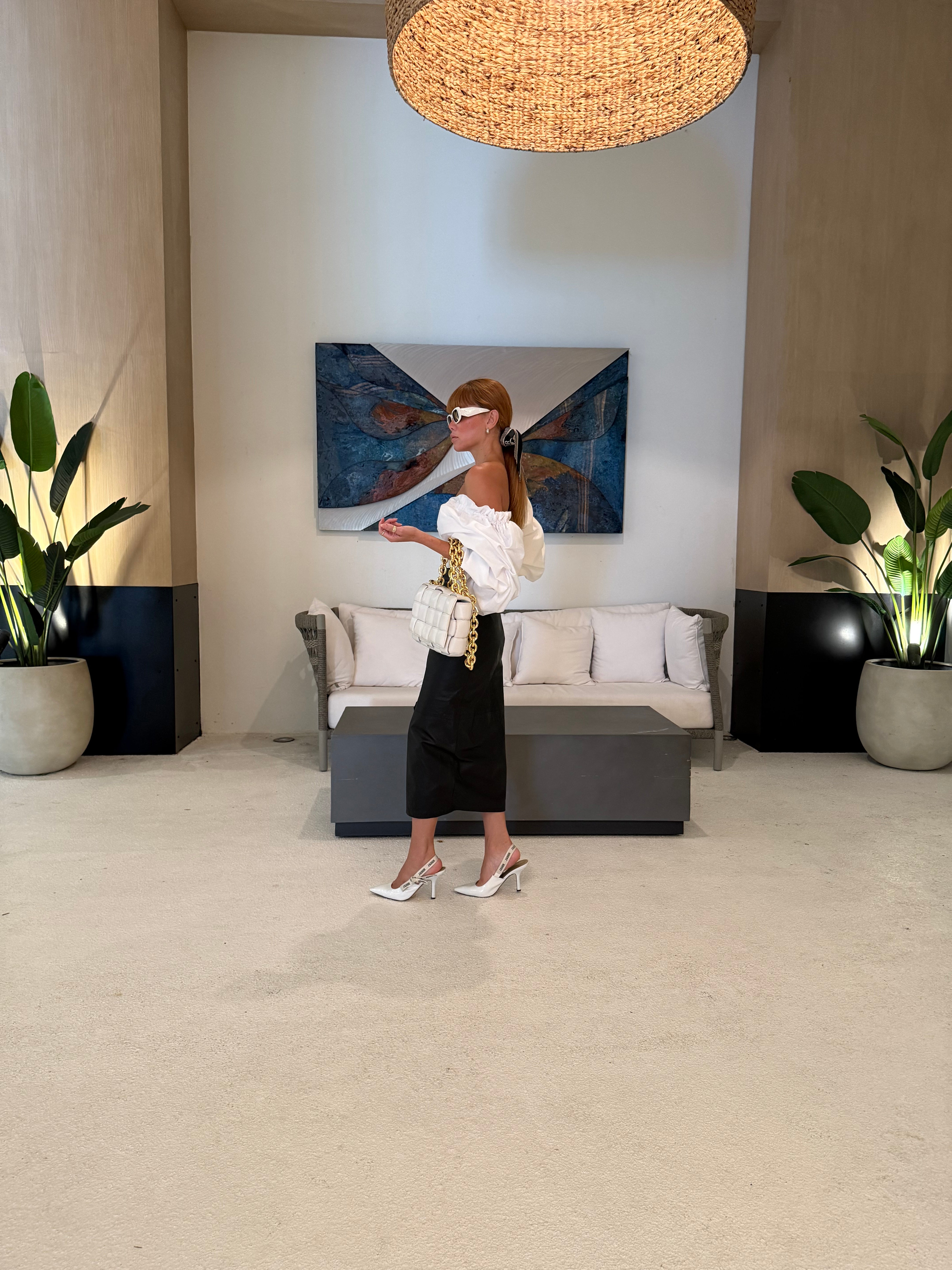 Pair with trousers for a modern work look, or style with a ruffled skirt or jeans for a balanced, fashion-forward outfit. Add bold earrings to complement the sculptural sleeve.